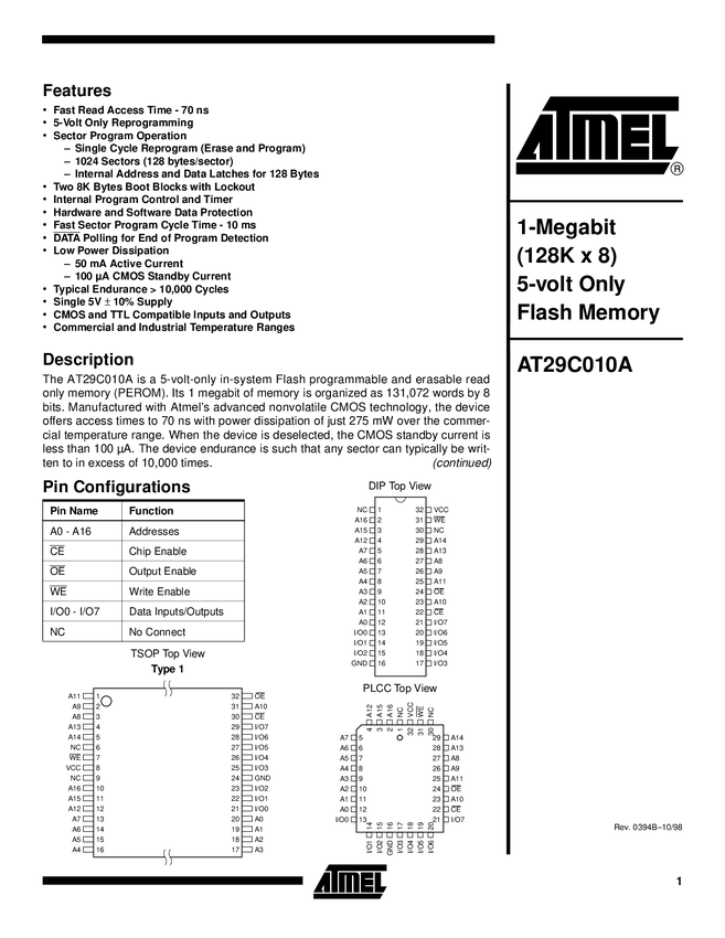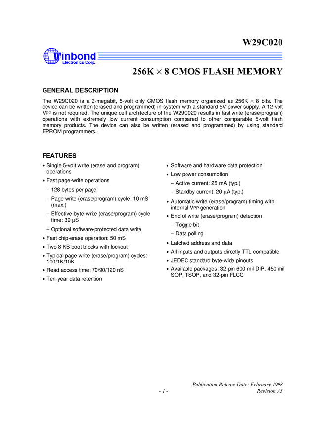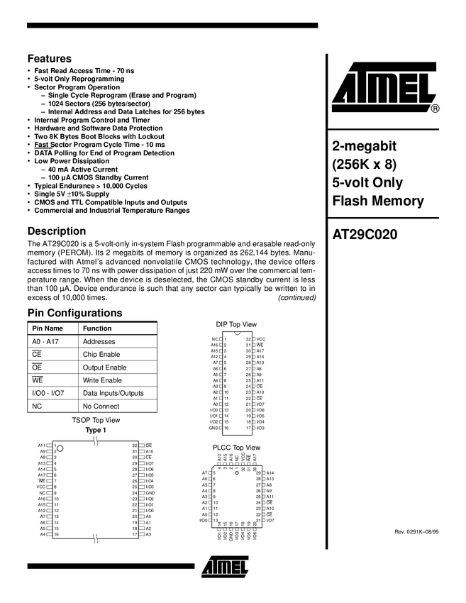 Pamięć FLASH 29C020 DIL32 Atmel 90ns