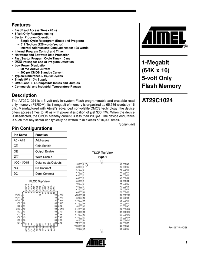 Pamięć Flash 29C1024 TSOP48 120ns Atmel
