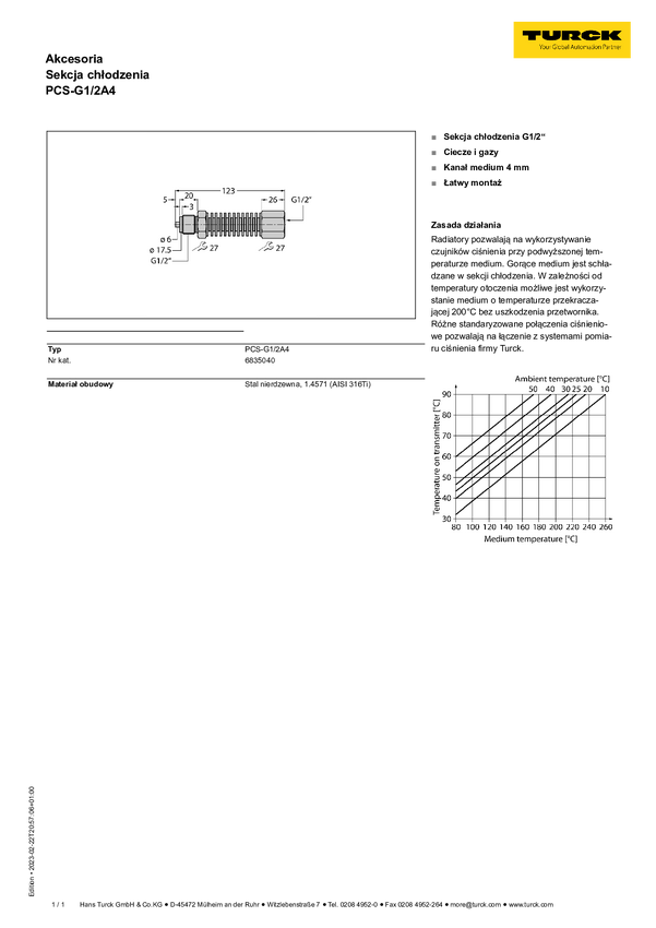 Turck 6835040 PCS-G1/2A4 1 szt.