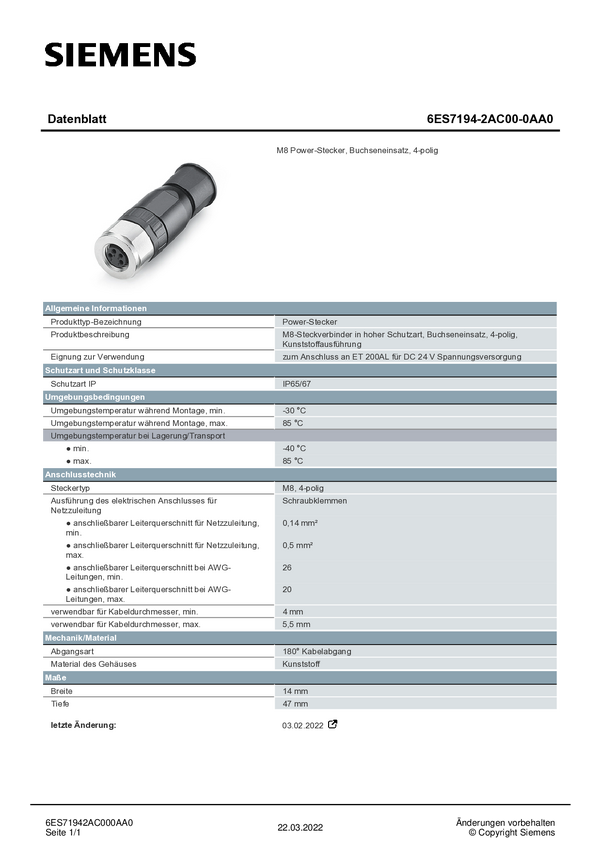 Siemens 6ES71942AC000AA0 6ES7194-2AC00-0AA0