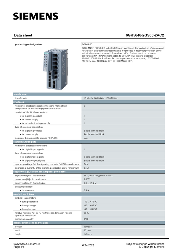 Element bezpieczeństwa Siemens 6GK5646-2GS00-2AC2