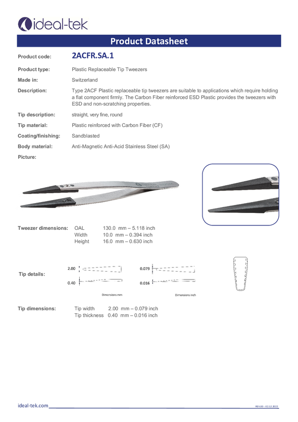 Pęseta Ideal Tek 2ACFR.SA.1.IT 130 mm