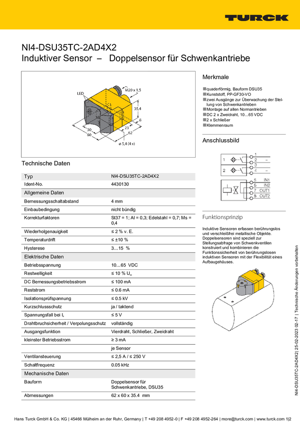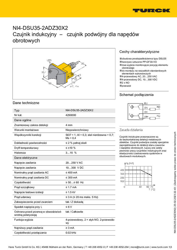 Turck Czujnik indukcyjny nie podtynkowy NI4-DSU35TC-2ADZ30X2