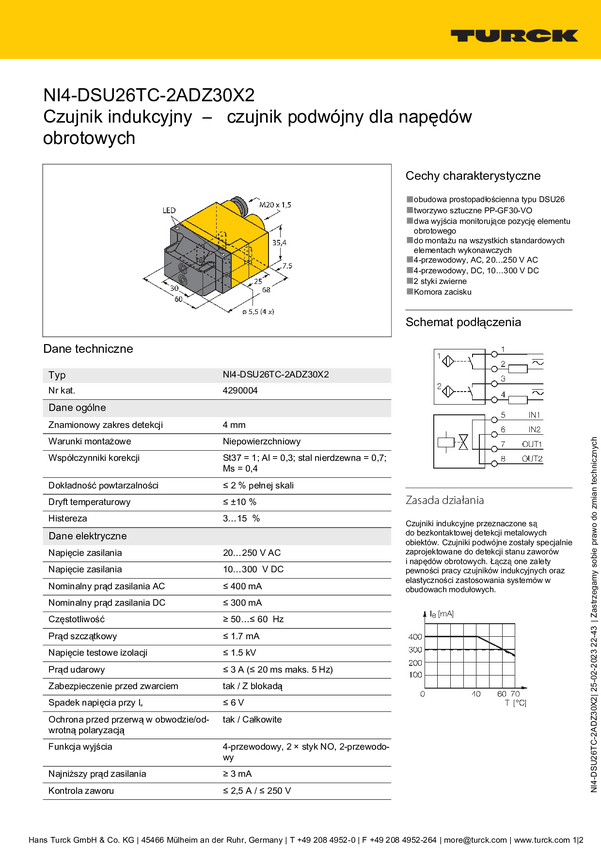 Turck Czujnik indukcyjny nie podtynkowy NI4-DSU26TC-2ADZ30X2