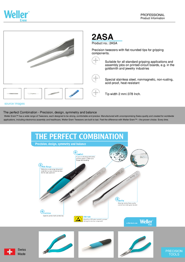 Pęseta precyzyjna Weller Erem® 2ASASLT 123.00 mm