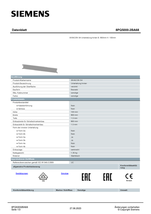 Pooddział Siemens 8PQ5000-2BA68 1 szt.