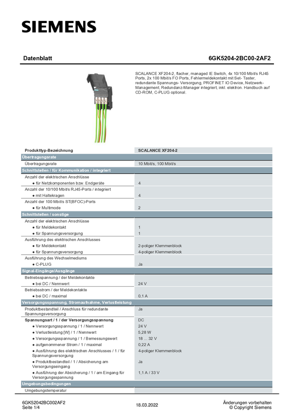 Siemens 6GK5204-2BC00-2AF2 Przemysłowy przełącznik Ethernet 10/100 MBit/s