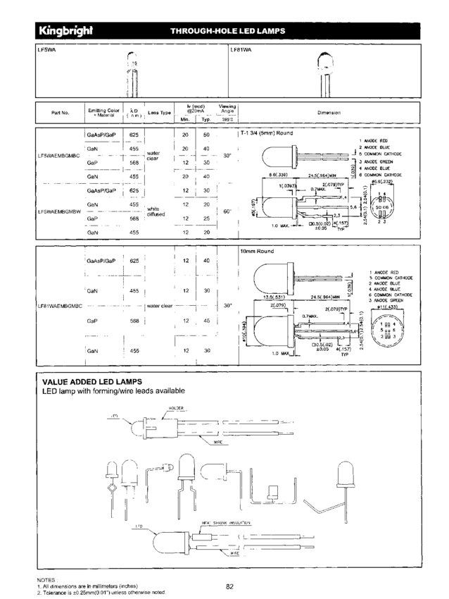 LED Quad-Color 2Blue/Green/Red 430nm/565nm/627nm 2-Pin T-1 3/4