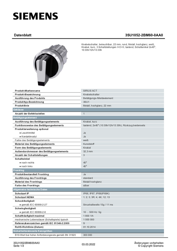 Siemens 3SU10522BM600AA0 3SU1052-2BM60-0AA0 Przełącznik pierścień przedni metalowy, błyszczący czarny, biały 2 x 45 ° 1