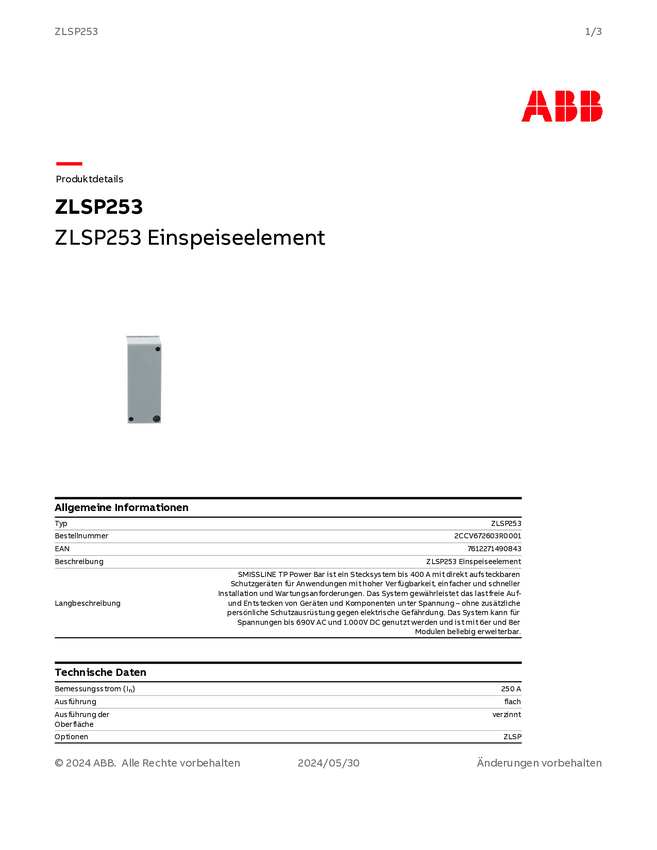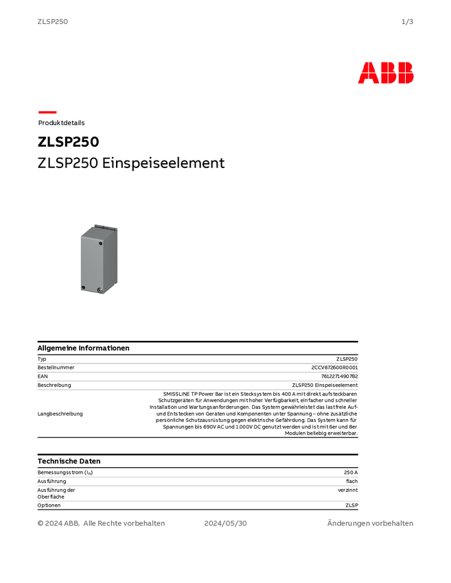 ABB 2CCV672603R0001 Zacisk wejściowy 1 szt.