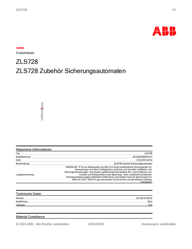 Ogranicznik prądu zwarciowego ABB 2CCS802901R0639 1 szt.