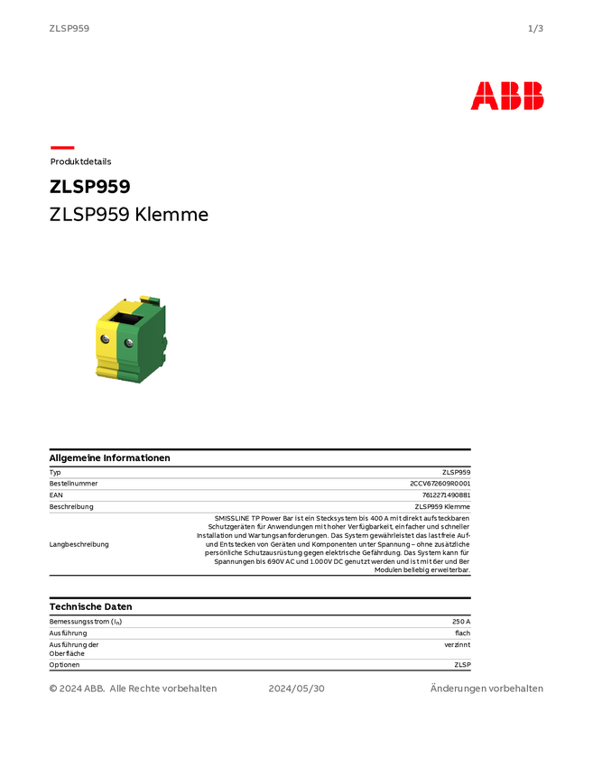 ABB 2CCV672609R0001 Zacisk 1 szt.