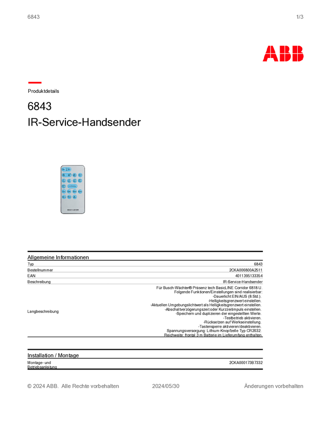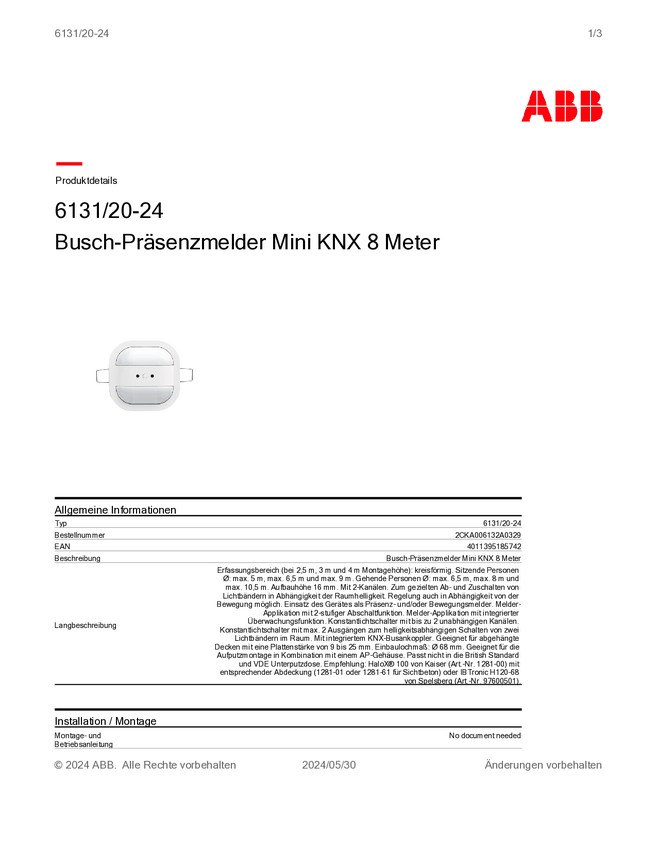 ABB 2CKA006132A0329 Czujnik ruchu 1 szt.