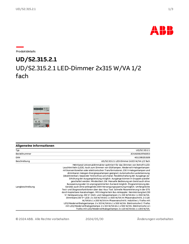 Ściemniacz LED ABB 2CKA006197A0061 UD/S6.315.2.1