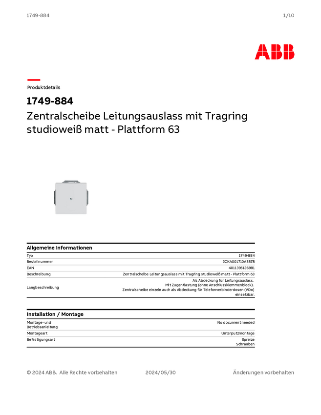 Busch-Jaeger Zaślepka biały, biały 2CKA001710A3878 1 szt.