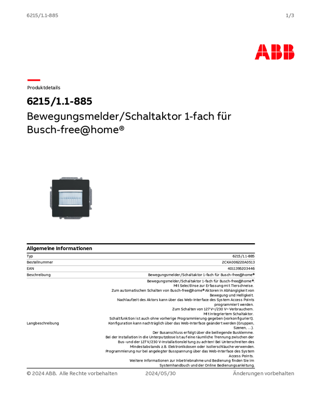 ABB 2CKA006132A0335 Czujnik ruchu 1 szt.