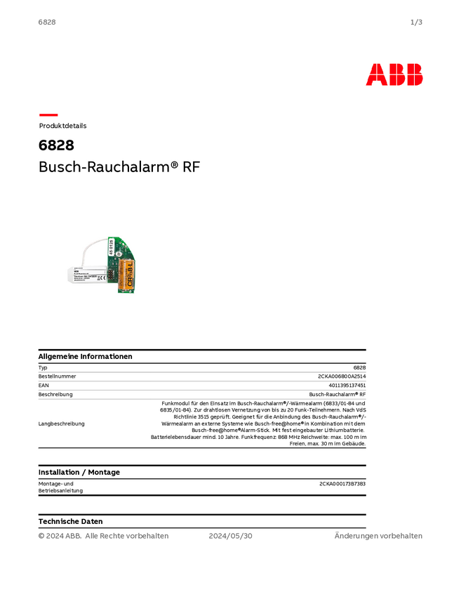 Busch-Jaeger 6828 Czujnik dymu