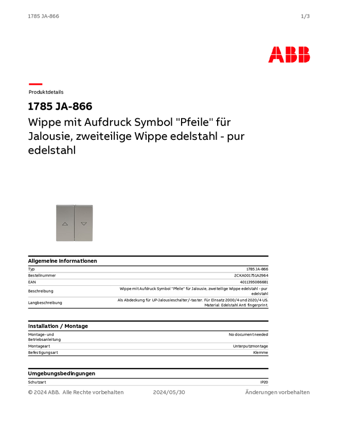 Busch-Jaeger Zaślepka Przełącznik do żaluzji stali szlachetnej 2CKA001751A2964 1 szt.