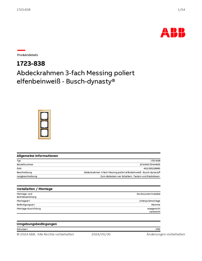 Busch-Jaeger 3 x Ramka Ramka Dynasty złoty 2CKA001754A4635 1 szt.