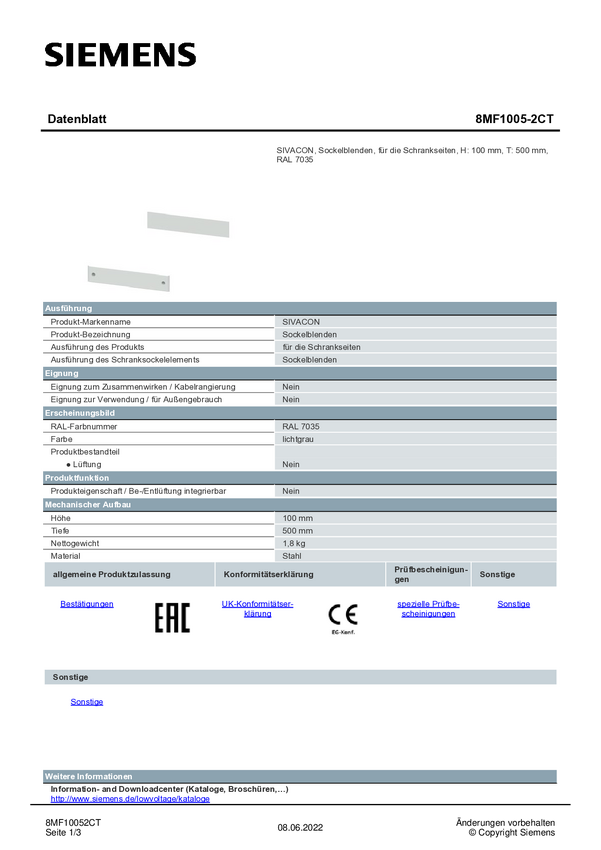 Cokół Siemens 8MF1005-2CT stal 1 szt.