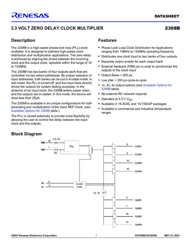 3.3V Zero Delay Clock Multiplier