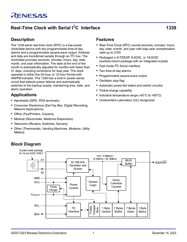 Real-Time Clock With Serial I2C Interface