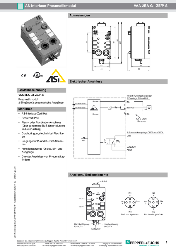 Rozdzielacz czujnik / element wykonawczy, aktywny Pepperl+Fuchs VAA-2EA-G1-ZE/P-S 048157 1 szt.