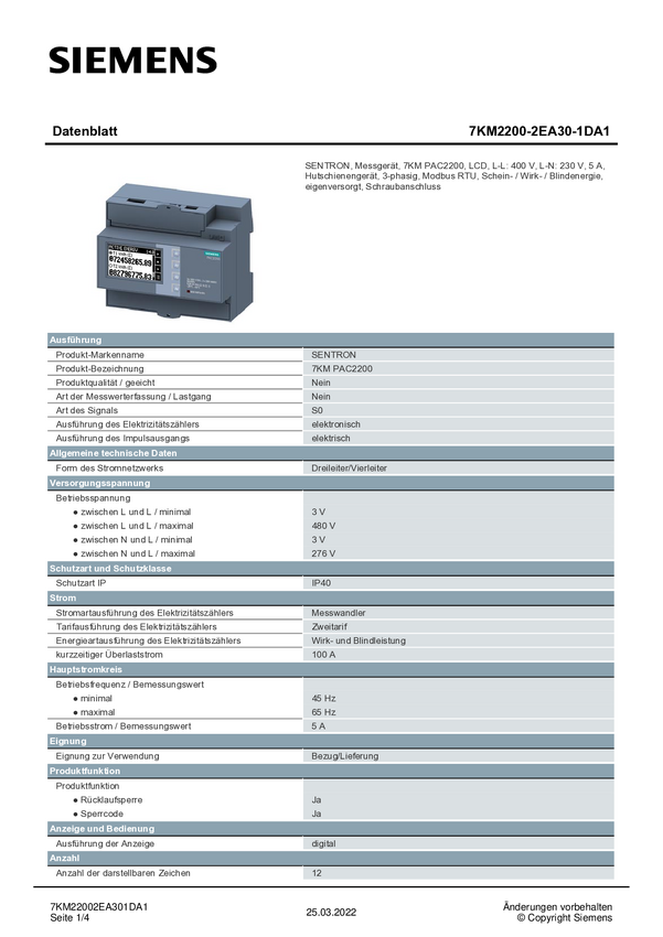 Siemens 7KM2200-2EA30-1DA1 Urządzenie pomiarowe