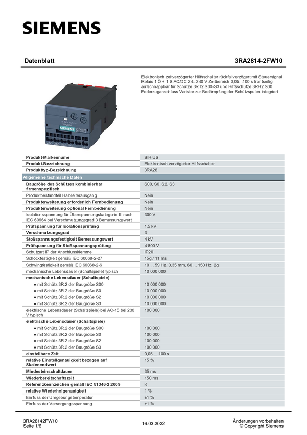 Siemens 3RA28142FW10 Przełącznik pomocniczy 3RA2814-2FW10, 1 szt.