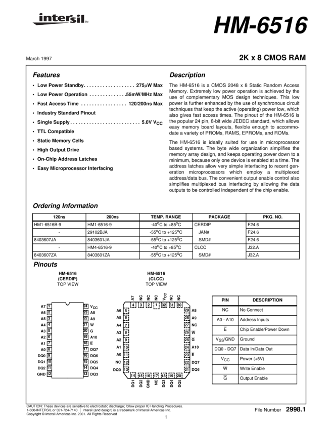 24AA024/24LC024/24AA025/24LC025 - 2K I2C Serial EEPROM (10/19/2009)