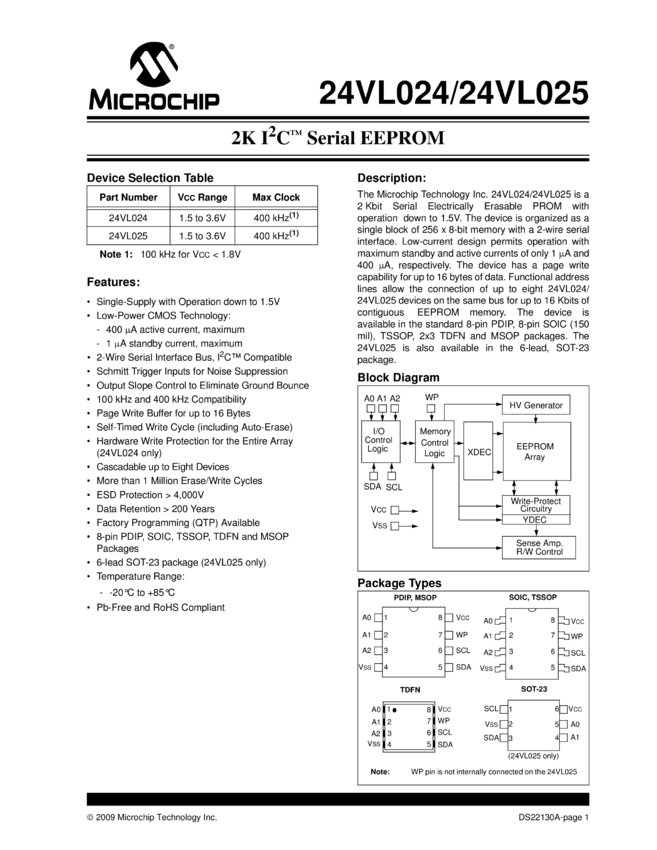 24VL024/24VL025 2K I2C Serial EEPROM Data Sheet (01/28/2009)