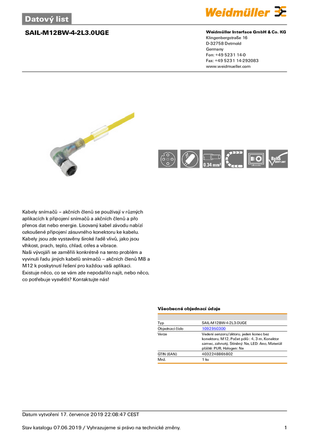 Przewód połączeniowy Weidmüller SAIL-M12GM12W-4-2L3.0T 1004310300 1 szt.