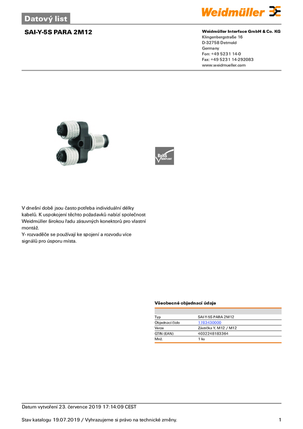 Złącze czujników/elementów wykonawczych Weidmüller SAI-Y-5S PARA 2M12 1783430000 1 szt.