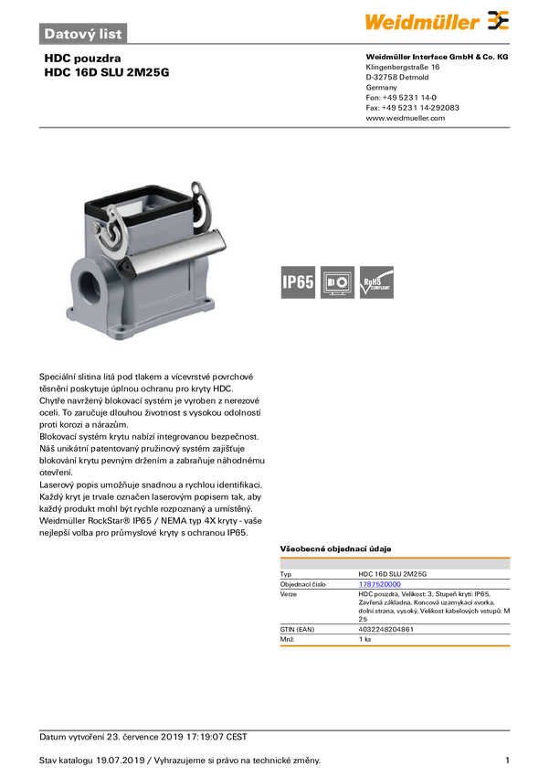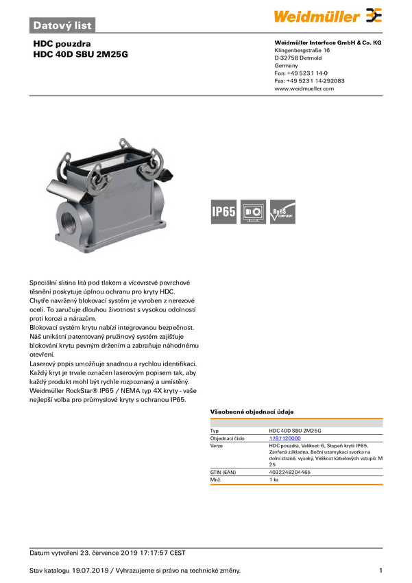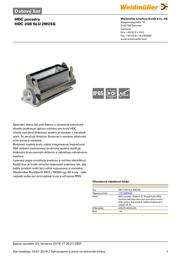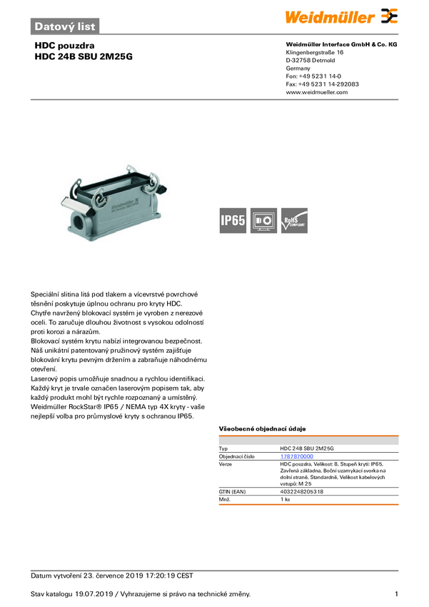 Weidmüller HDC 24D SDLU 2M25G 1787420000 Obudowa podstawowa 1 szt.
