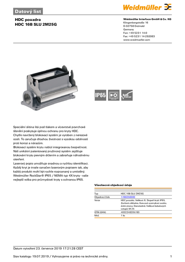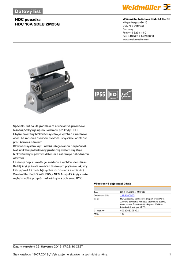Weidmüller HDC 16B SDLU 2M25G 1788270000 Obudowa podstawowa 1 szt.