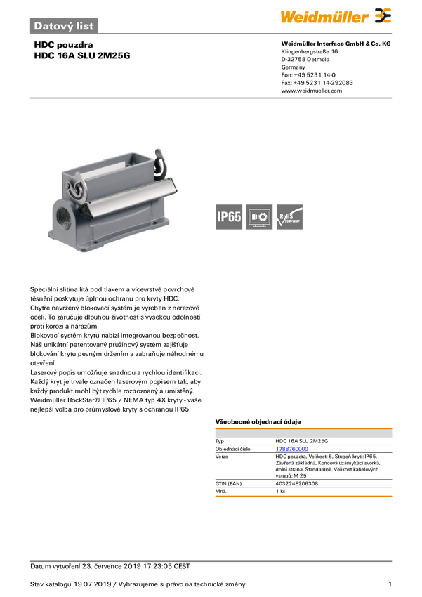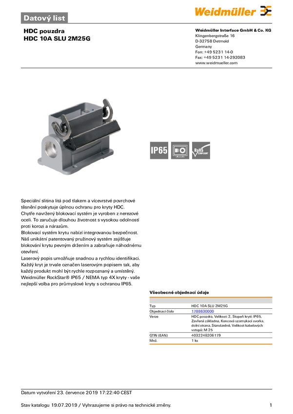 Obudowa podstawowa HDC 10A SLU 2M25G Weidmüller 1788630000 1 szt.