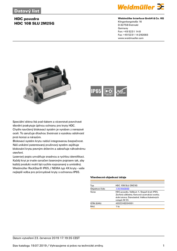 Weidmüller HDC 10B SBU 2M25G 1787630000 Obudowa podstawowa 1 szt.