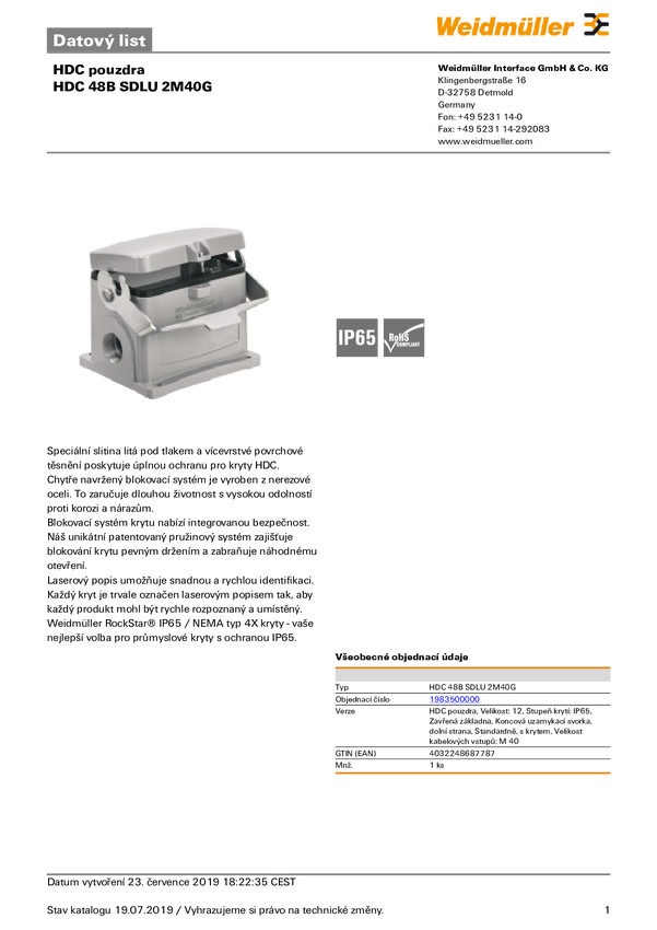 Weidmüller HDC 48B SDLU 2M40G 1983500000 Obudowa podstawowa 1 szt.