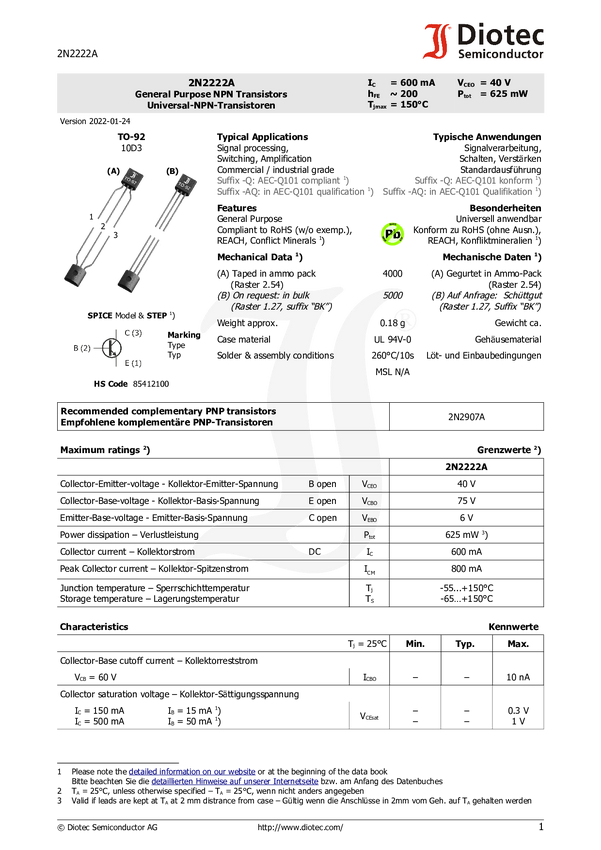 Diotec 2N2222A Tranzystor (BJT) - dykretny 1 szt.