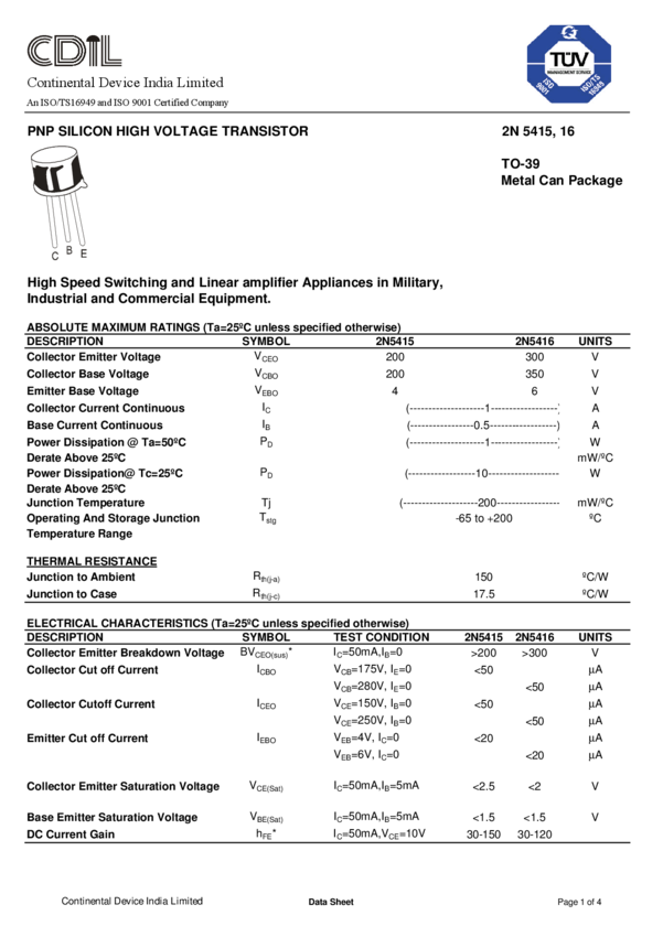 LDS-0305 PNP Silicon Low-Power Transistor 2N5415_2N5416