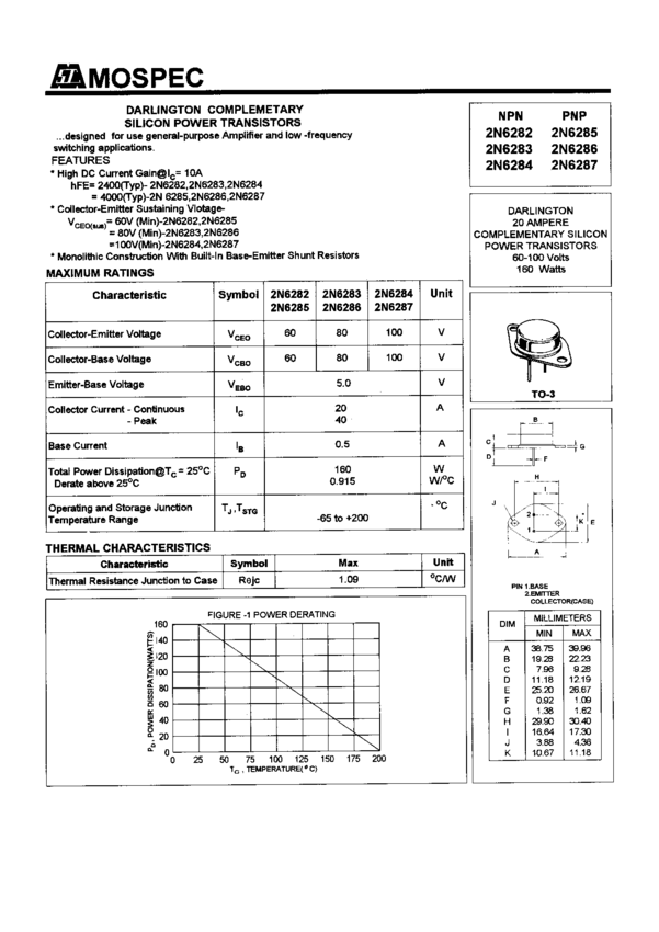 20 A, 100 V PNP Darlington Bipolar Power Transistor