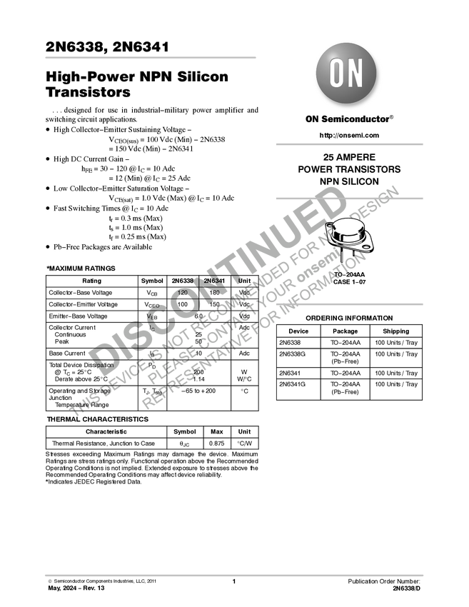 25 A, 100 V High Power NPN Bipolar Power Transistor