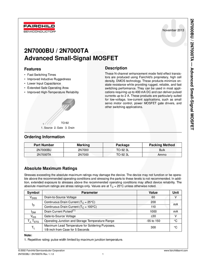 2N7000 Datasheet - N-Channel Enhancement-Mode Vertical DMOS FET (09/10/2008)