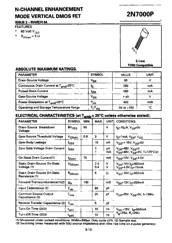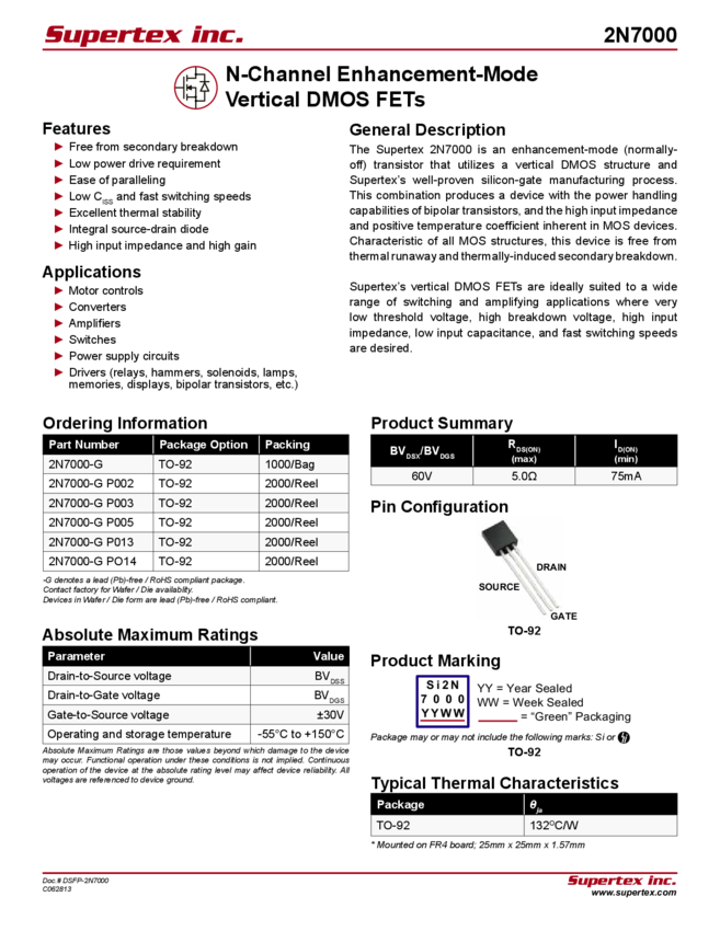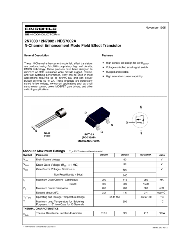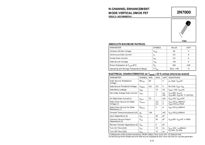 2N7000 N-Channel Enhancement-Mode Vertical DMOS FET Data Sheet