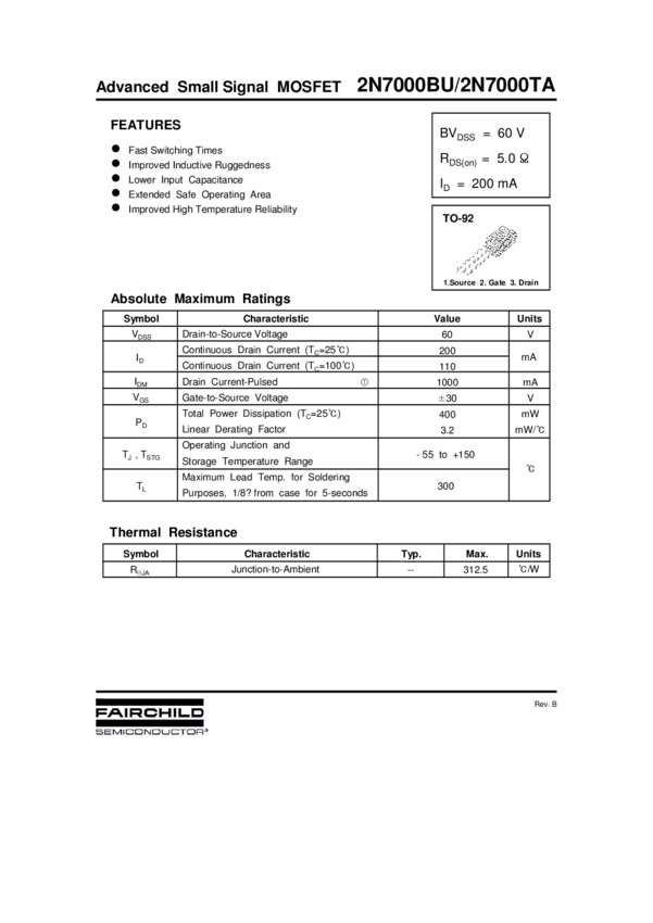 Small Signal MOSFET 60V 200mA 5 Ohm Single N-Channel TO-92