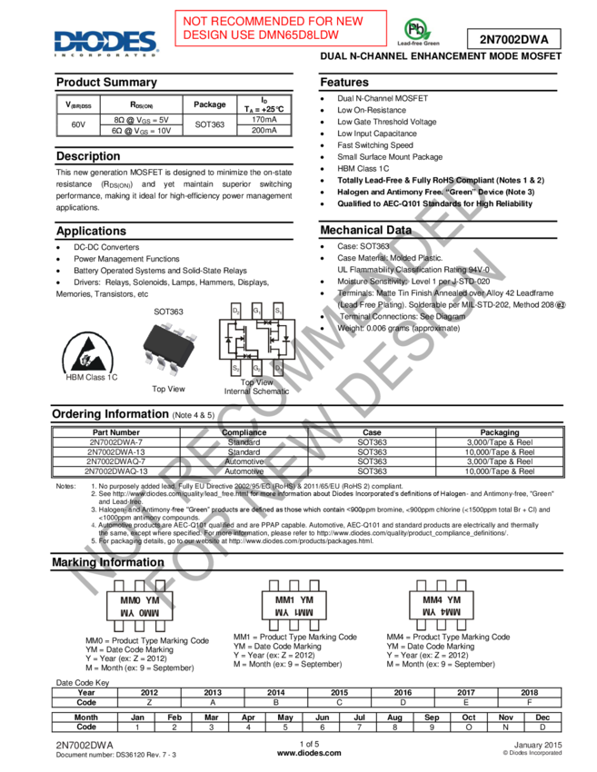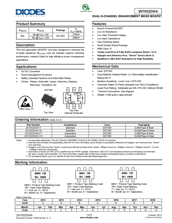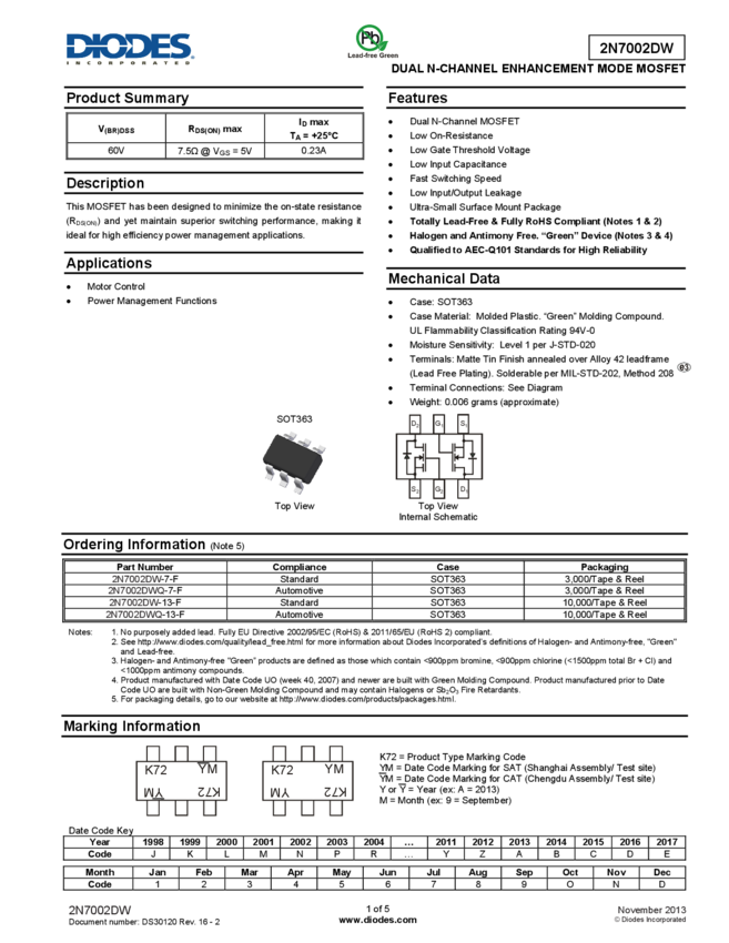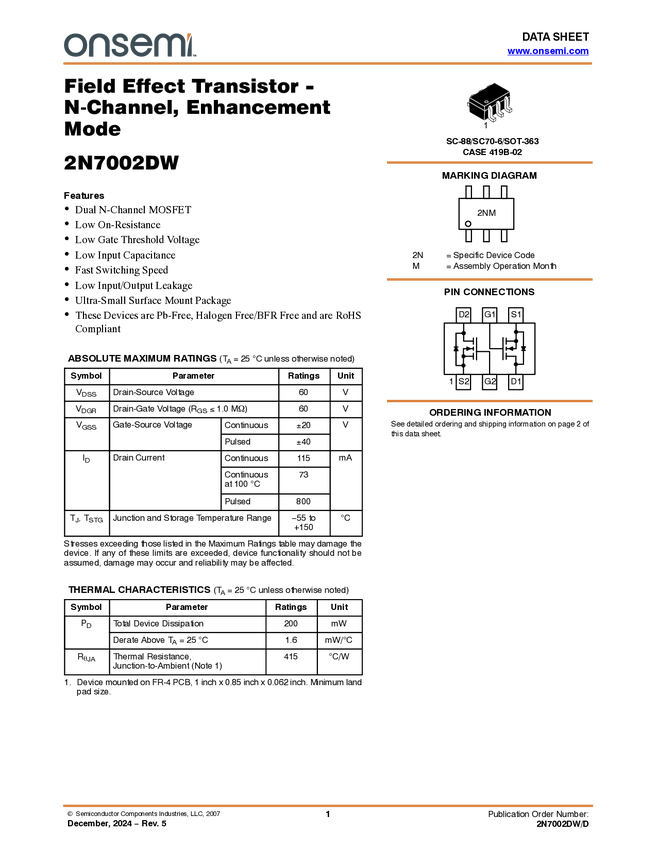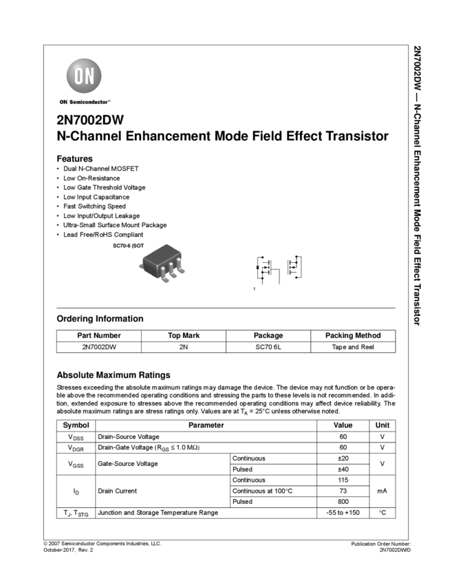 N-Channel Enhancement Mode Field Effect Transistor 60V, 0.115A, 2Ω