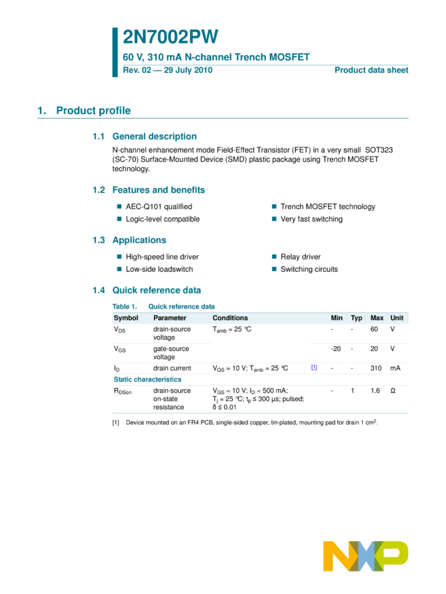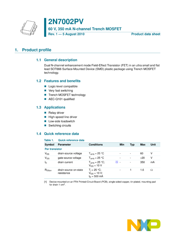 N-MOSFET 360mA, 60V, SOT23, NXP