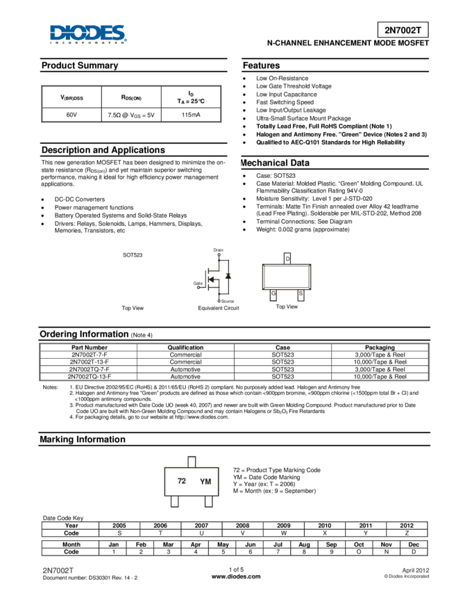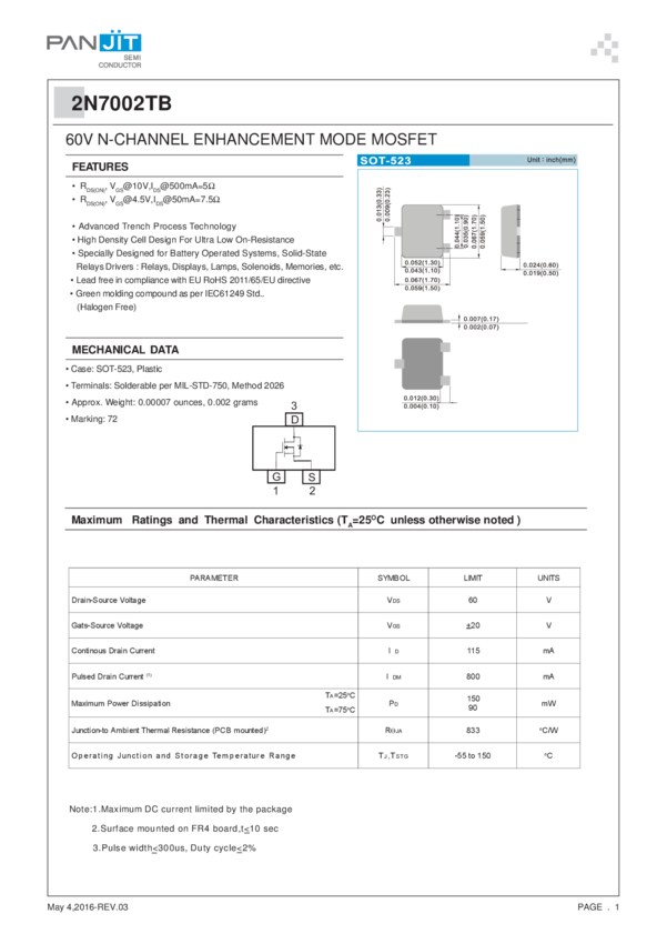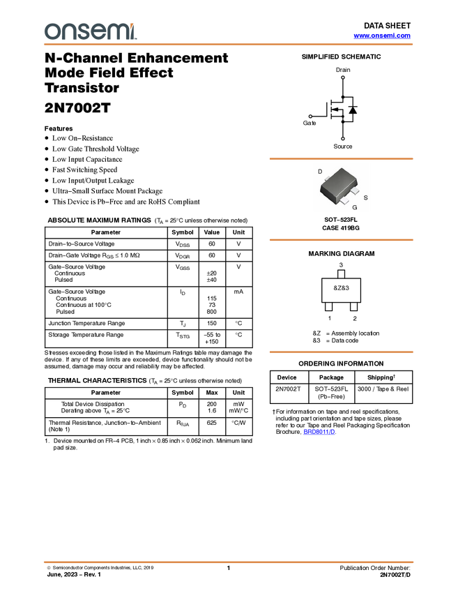 N-Channel Enhancement Mode Field Effect Transistor 60V, 115mA, 2Ω