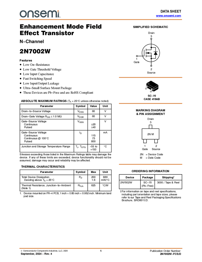 N-Channel Small Signal MOSFET 60V, 340mA, 1.6Ω