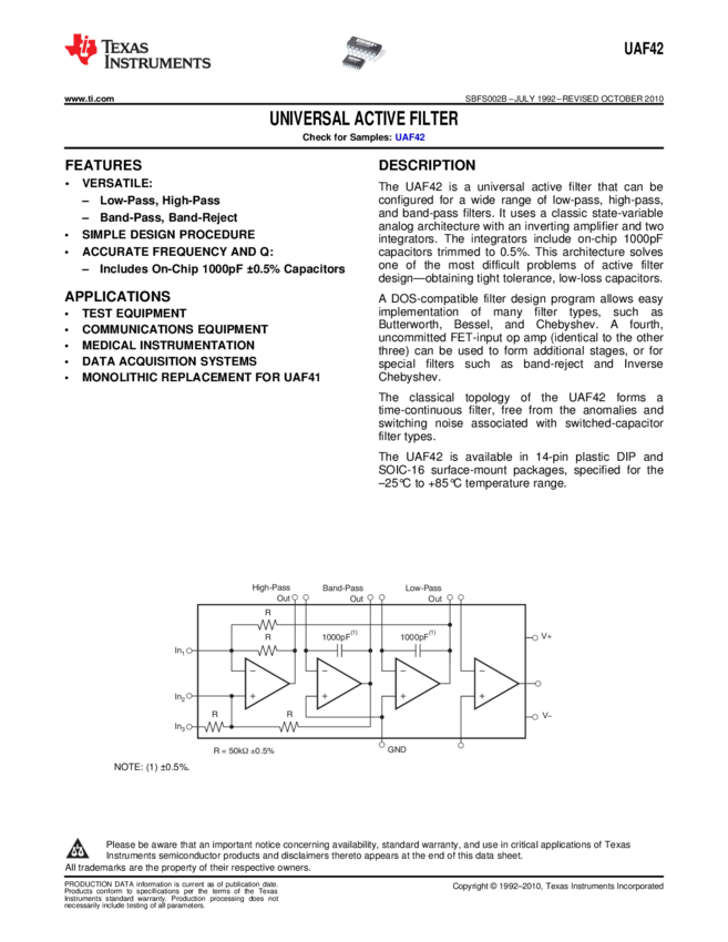 Active Filter Quad SW-CAP UNIV 2nd Order 100kHz 16-Pin SOIC Tube
